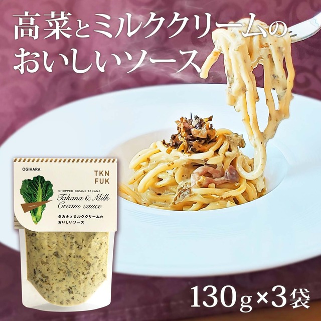 高菜の新しい入口から、世界へ。 しっかり旨味を感じる、 濃厚でクリーミーな味わいのミルクソースです。 ベシャメルソースとしてグラタンやピザに、 焼いたお魚やチキンに。そしてもちろんパスタにも。 ディップソースとしても楽しめる万能ソースです。 特別な日のおもてなしにどうぞ。 ◆高菜約20%使用 ◆存在感のある具材 ◆旨味の強い高菜の茎を使用 ◆じっくり炒めた玉葱とガーリックでさらにコクを引出し美味しさUP ■商品詳細 商品名:高菜とミルククリームのおいしいソース 内容量:130g×3袋 賞味期限:配送後約1ヶ月以上 保存方法:直射日光及び高温多湿を避けて保存してください。 使用上の注意:レンジ温めの場合、パウチのままは不可です。 ■栄養成分表示(130gあたり)推定値 エネルギー:187Kcal たんぱく質:2.6g 脂質:16.4g 炭水化物:8.1g 食塩相当量:2.1g ■配達方法 佐川急便 飛脚ゆうパケット便 ・「送料無料」でお届けいたします。 ・お届けはポスト投函になります。 ・一部地域、一部離島へは、日数がかかる場合もございます。 ・天候や道路状況等により、配達に遅れが生じる場合もございます。 ※配達日時指定不可です。 ※代引きでのご注文は不可となっております。 (配達日時指定、代引き等をご選択でのご注文は、修正・キャンセル処理いたします。)